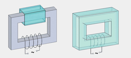 同屬工頻感應(yīng)的 GTG30,cosφ為什么能高達0.98以上呢?對此,我們借用圖4作簡單地說明。圖4中,在鐵芯、原邊繞組相同的條件下,副邊的包覆系數(shù)低,cosφ低;包覆系數(shù)高,cosφ高。 GTG30的主機非常巧妙地利用外殼作為副邊,包覆系數(shù)幾乎是百分之百,所以功率因數(shù)能如此之高。